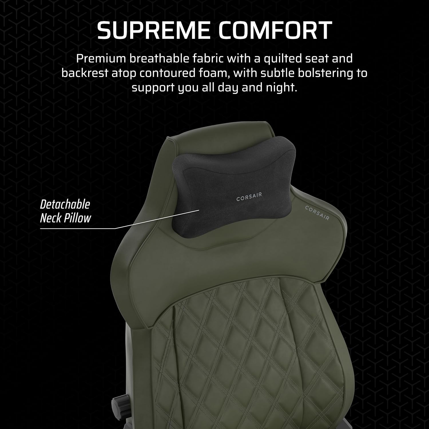 The Corsair TC500 Luxe is a high-end gaming chair designed for users seeking luxury, comfort, and robust adjustability. Built with breathable premium fabric and a wider, flatter seat, it offers excellent comfort for long gaming or working sessions. It includes a four-direction adjustable lumbar support for better back relief, a reclining backrest ranging from 90° to 160°, and Omniflex 4D armrests for flexible arm positioning. A detachable magnetic neck pillow adds extra comfort, and the chair’s steel inner frame, strong metal base, and durable build ensure lasting support. This chair supports users up to 120 kg in weight and is suitable for heights up to around 188 cm.